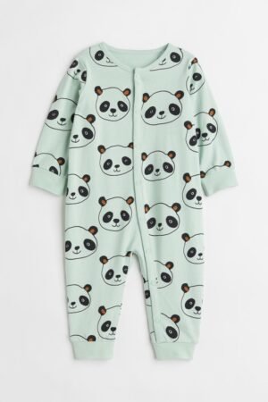 ₨4,550.00All-in-one pyjamas in soft organic cotton jersey with press-studs fastenings, short sleeves and short legs.H&M Green Panda Sleepsuit