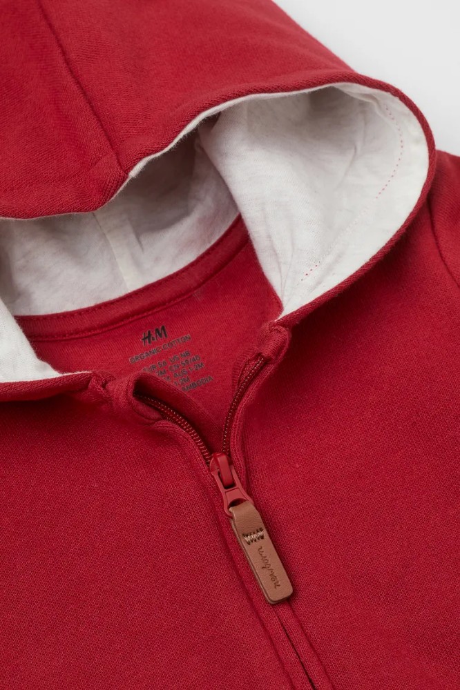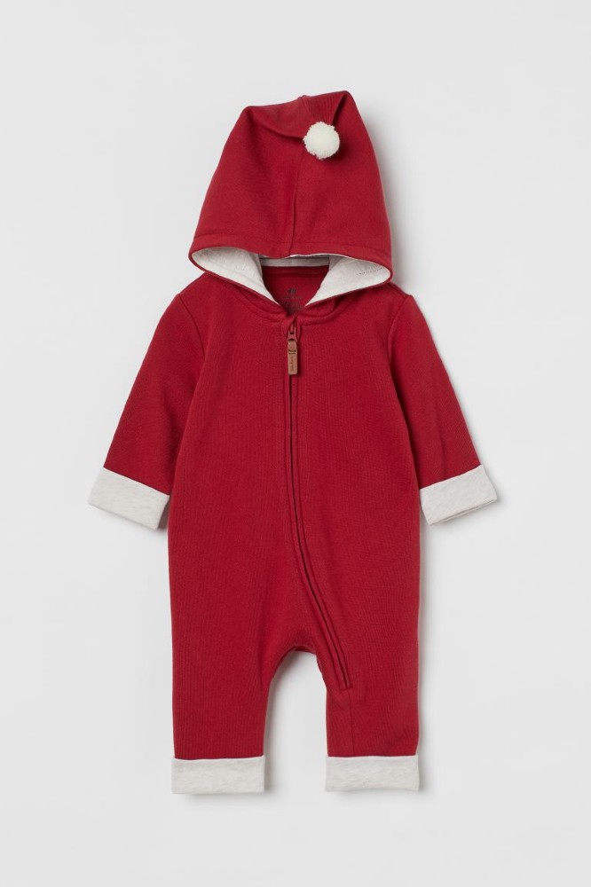 All-in-one suit in a soft cotton blend with a jersey-lined hood, concealed zip down the front with a chin guard and wide, foldover ribbing at the cuffs and hems. The cotton content of the all-in-one suit is organic.