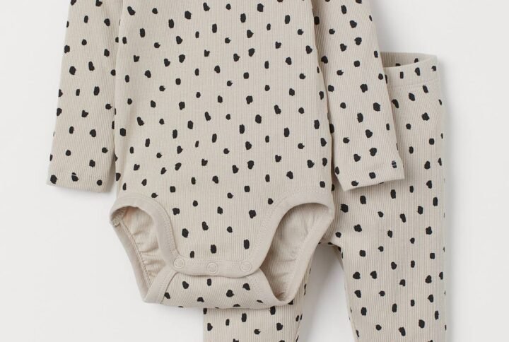 Set with a top in cotton sweatshirt fabric and bottoms in soft cotton jersey. Long-sleeved top with a print-motif, dropped shoulders and press-studs on one shoulder (except in sizes 2–4Y). Ribbing around the neckline, cuffs and hem. Bottoms with an adjustable, elasticated waist.