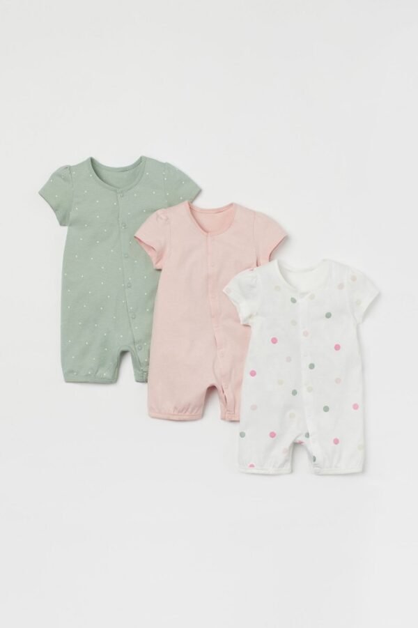 All-in-one pyjamas in soft organic cotton jersey with press-studs fastenings, short sleeves and short legs.