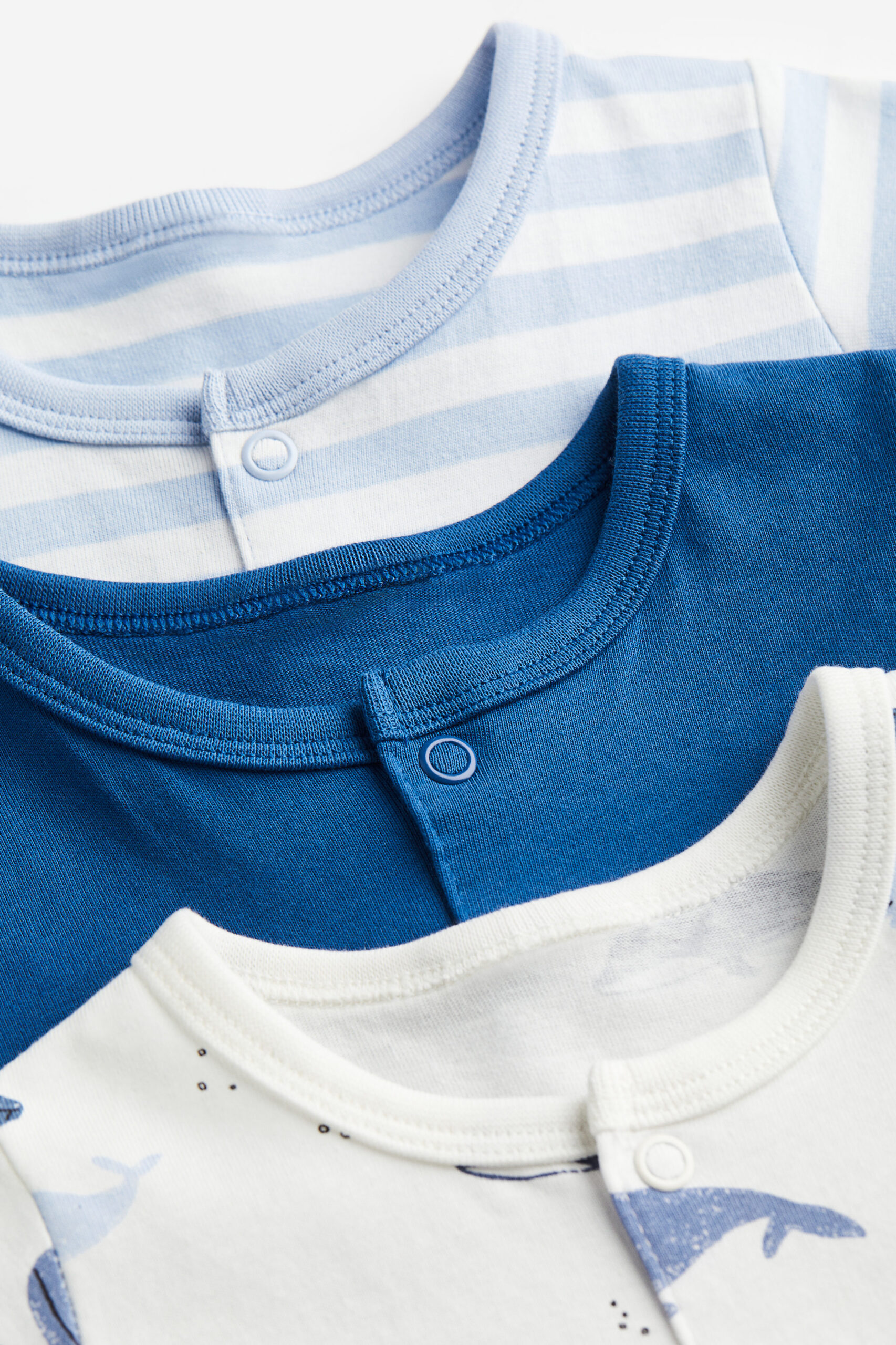 All-in-one pyjamas in soft cotton jersey with short sleeves, short legs, and press-studs down the front and one leg for easy changing.