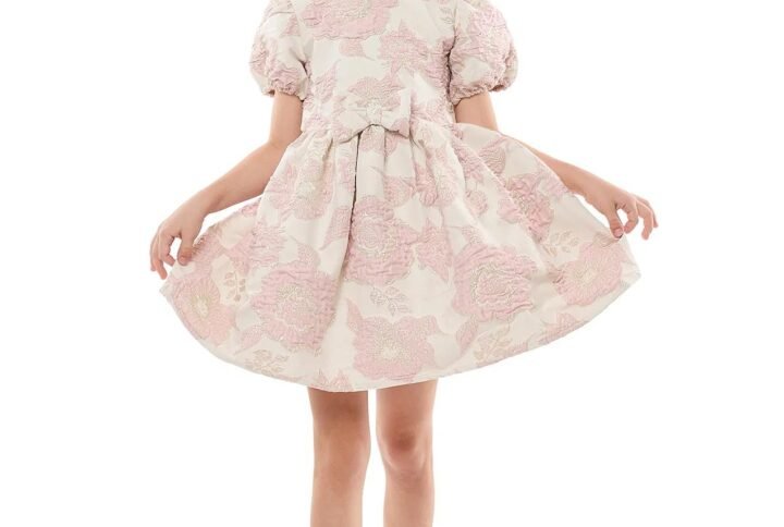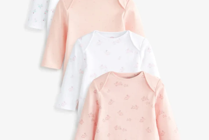 A white T-shirt decorated with a striped pattern and a “Sea creatures” design, and red shorts.