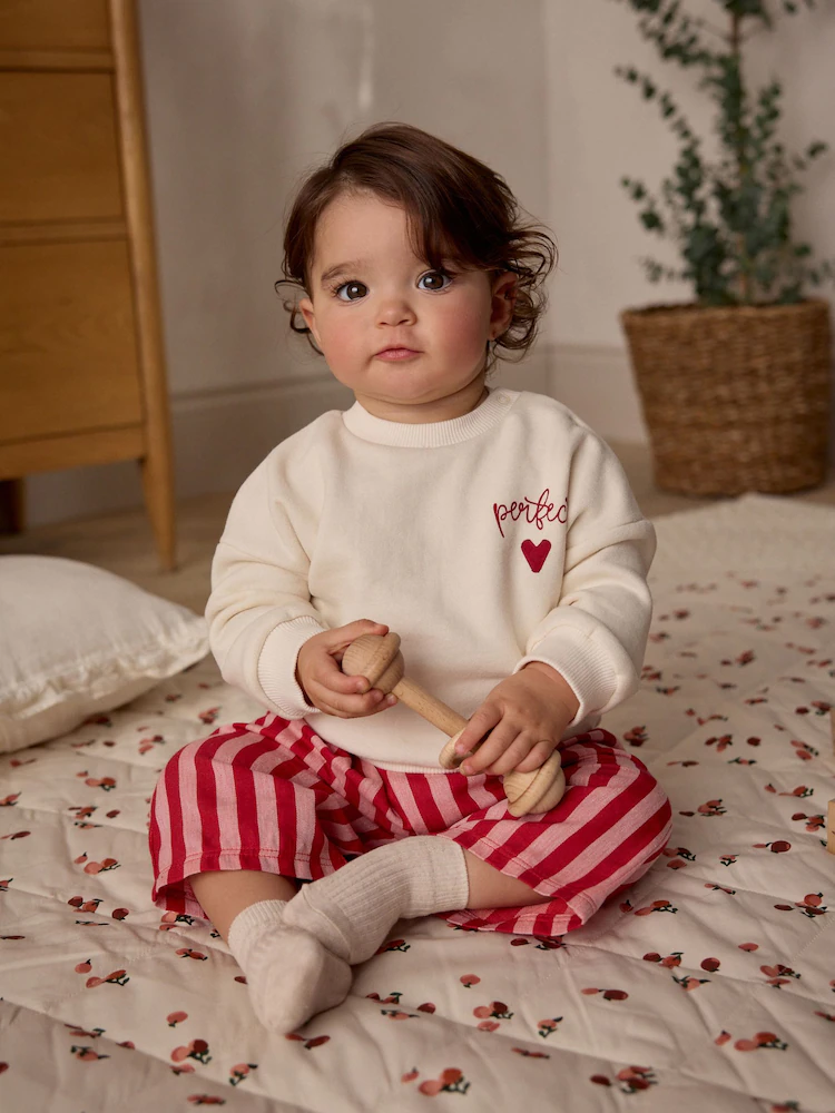 Sweater 82% Cotton, 18% Recycled polyester. Trouser 100% Cotton.