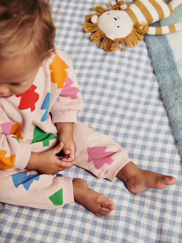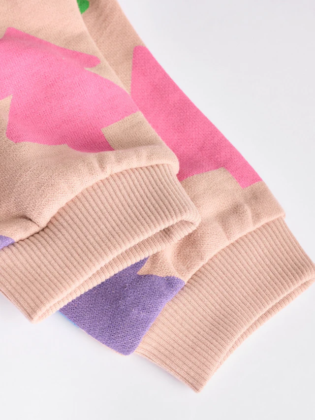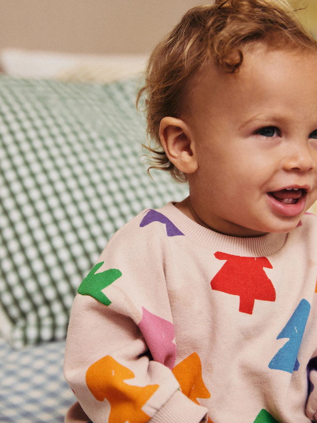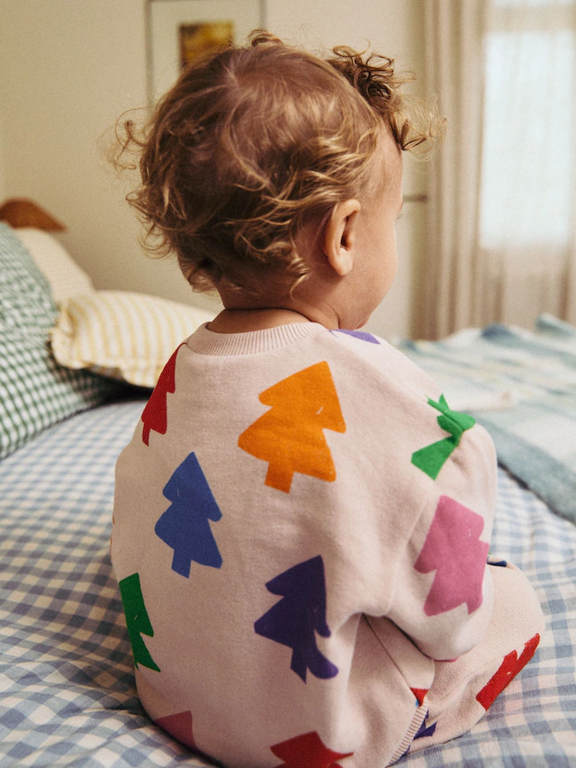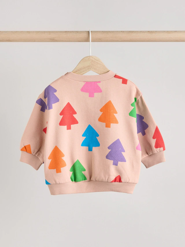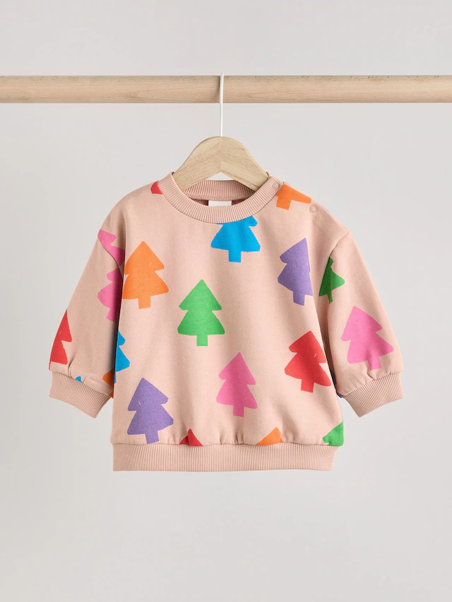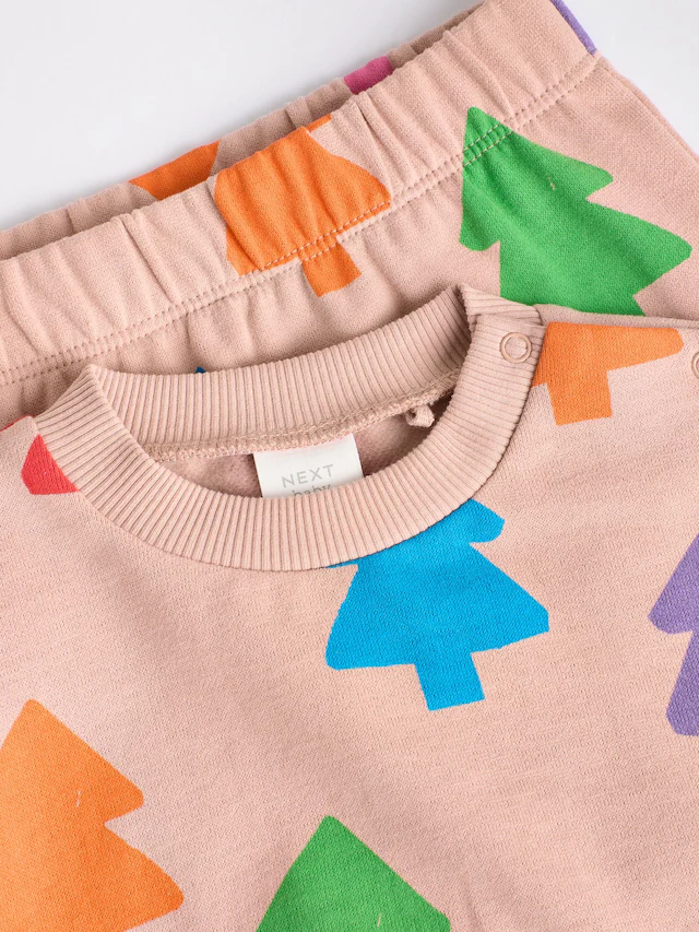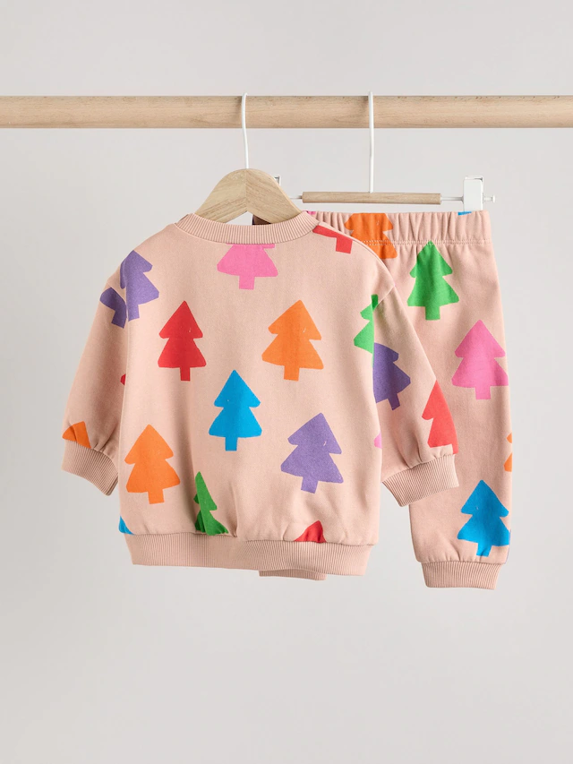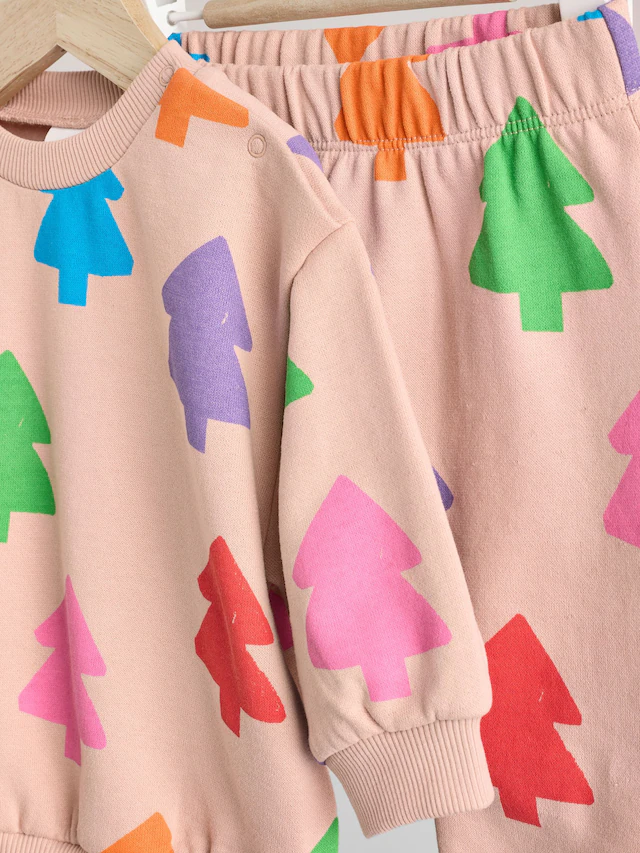 This collection of festive outfits feature a cosy cotton-rich sweatshirt with a crewneck collar and a popper fastening to the neckline, alongside a pair of wide leg jogging bottoms with an elasticated waistband.