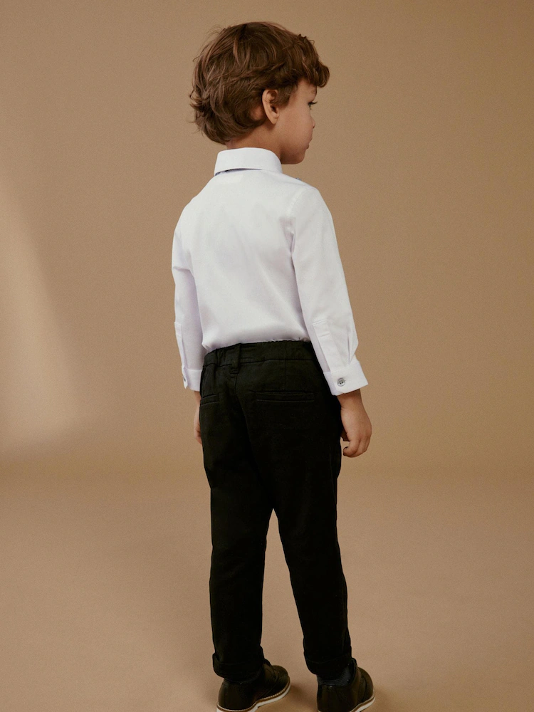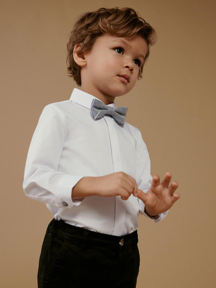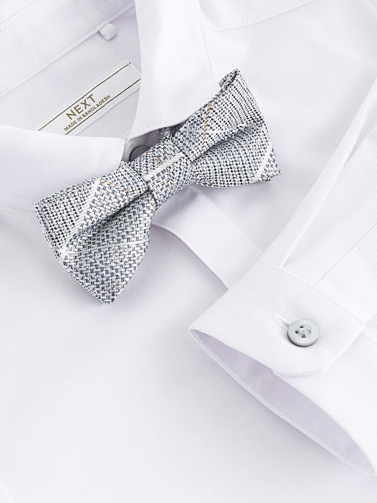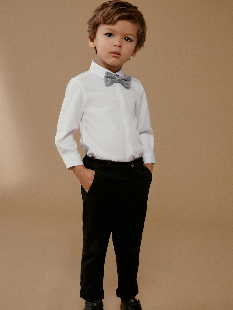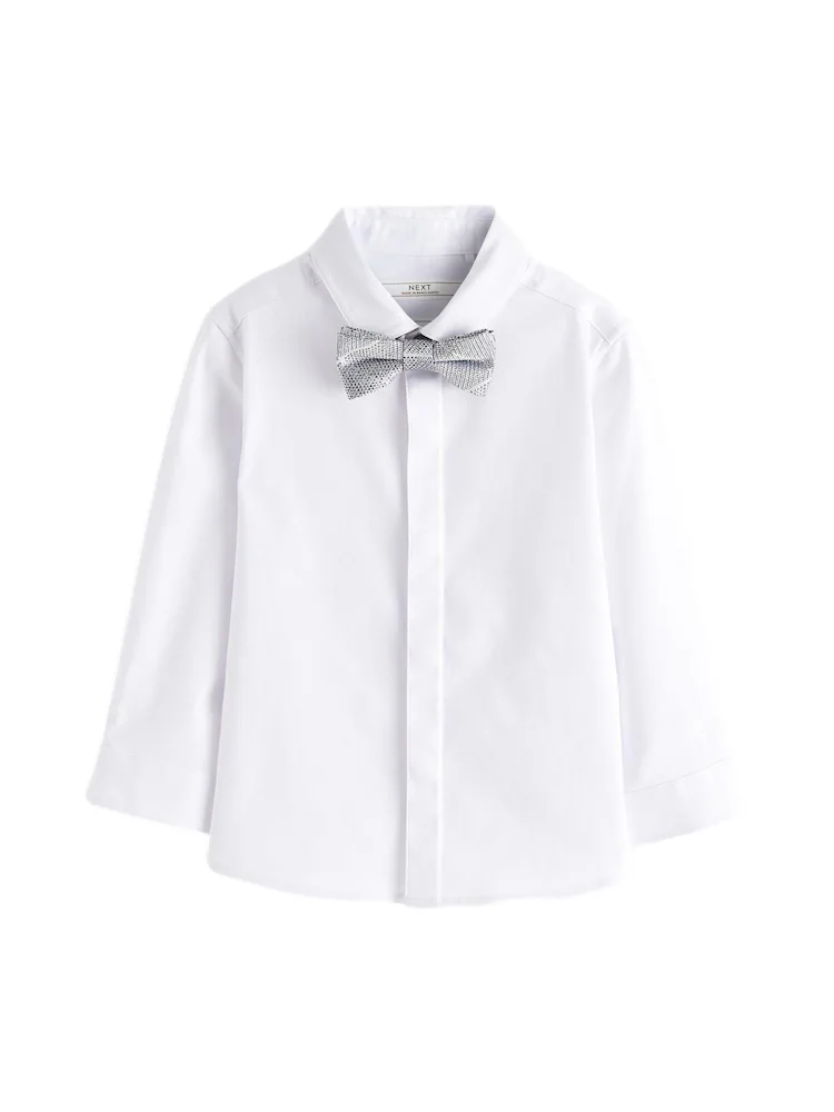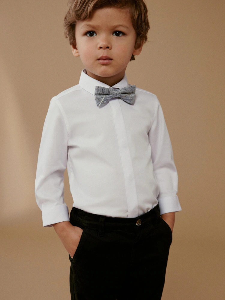 Your little dude will look smart and stylish in this convenient set, featuring a pure cotton white shirt with a button-up fastening and a smart collar alongside a coordinating bow tie.