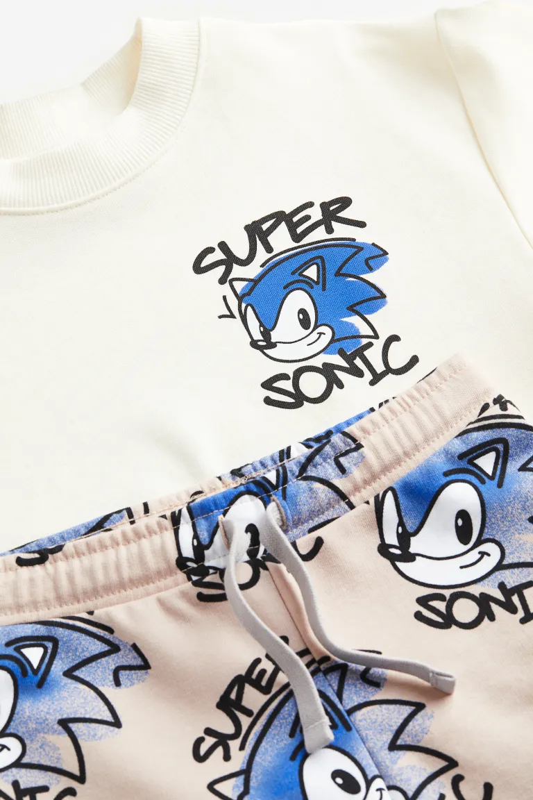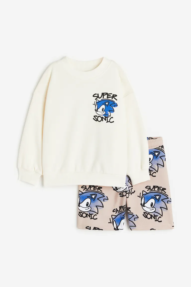 Set with a long-sleeved top and a pair of shorts in printed, lightweight sweatshirt fabric. Top with a round, rib-trimmed neckline, dropped shoulders and ribbing around the cuffs and hem. Shorts with an elasticated, drawstring waist and an open back pocket.